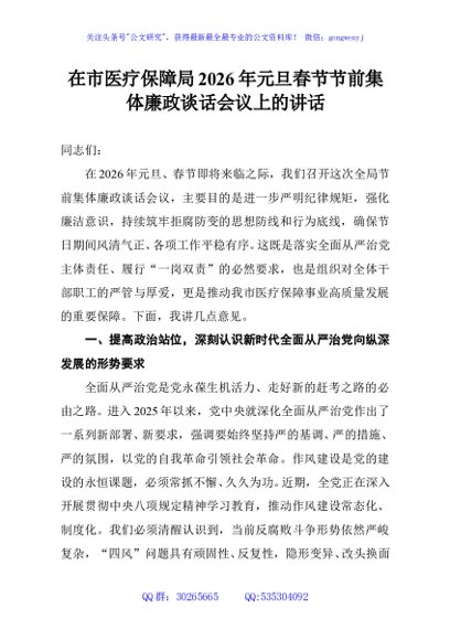 / 在市医疗保障局2026年元旦春节节前集体廉政谈话会议上的讲话