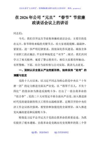 / 在2026年公司“元旦”“春节”节前廉政谈话会议上的讲话