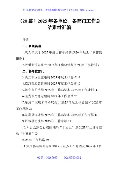 / (20篇)2025年各单位、各部门工作总结素材汇编
