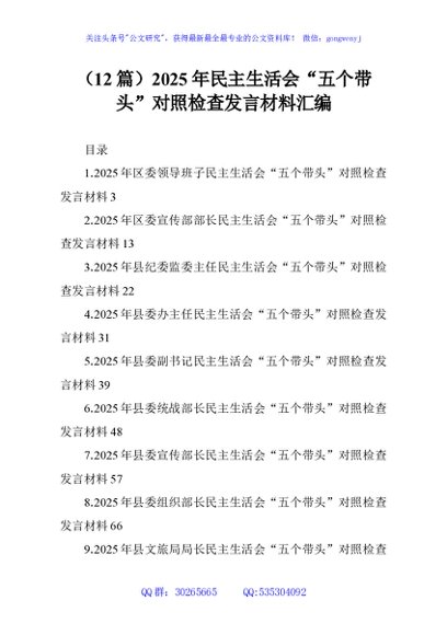 / (12篇)2025年民主生活会“五个带头”对照检查发言材料汇编