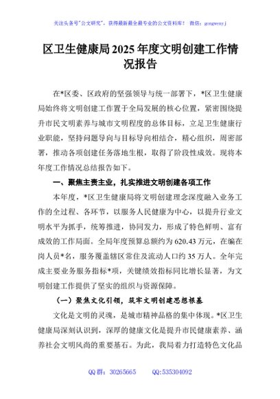 / 区卫生健康局2025年度文明创建工作情况报告