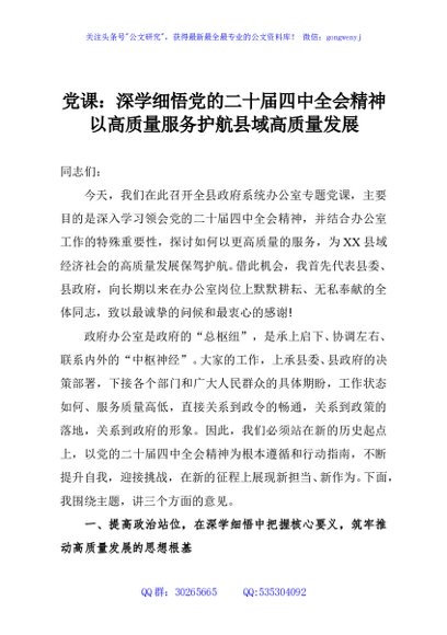/ 党课:深学细悟党的二十届四中全会精神以高质量服务护航县域高质量发展