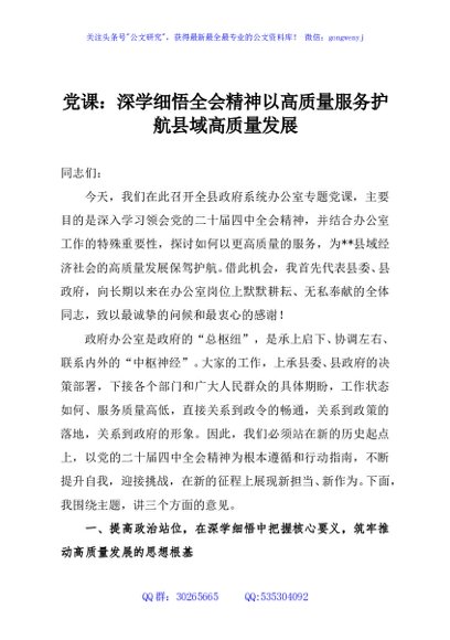 / 党课:深学细悟全会精神以高质量服务护航县域高质量发展