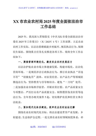 / XX市农业农村局2025年度全面依法治市工作总结
