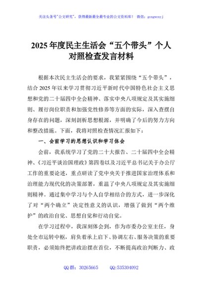 / 2025年度民主生活会“五个带头”个人对照检查发言材料