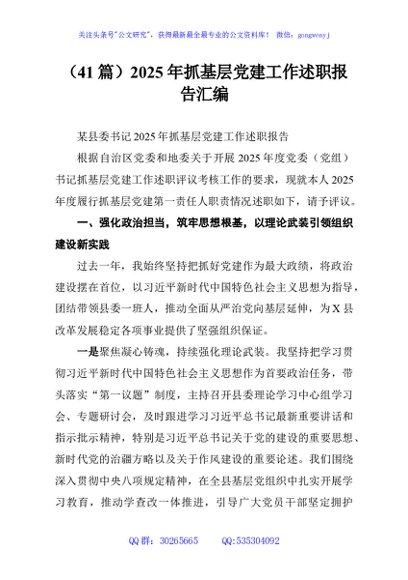 / (41篇)2025年抓基层党建工作述职报告汇编