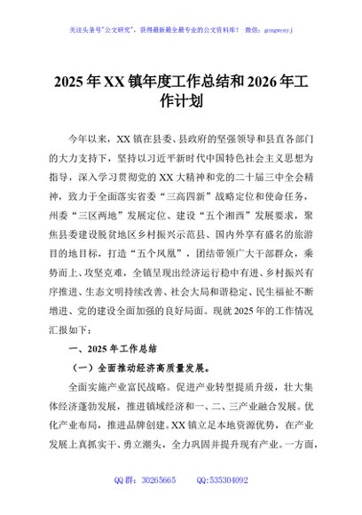 / 2025年XX镇年度工作总结和2026年工作计划