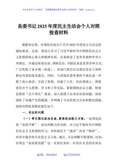 / 县委书记2025年度民主生活会个人对照检查材料