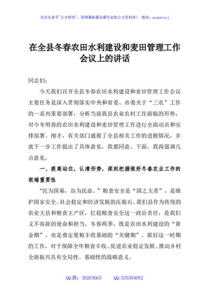 / 在全县冬春农田水利建设和麦田管理工作会议上的讲话