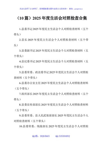 (10篇)2025年度生活会对照检查合集