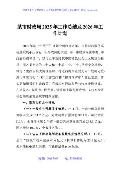 / 某市财政局2025年工作总结及2026年工作计划