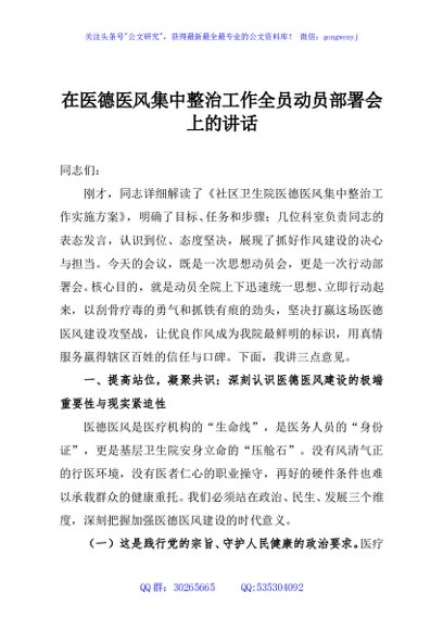 / 在医德医风集中整治工作全员动员部署会上的讲话