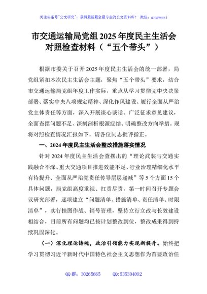 / 市交通运输局党组2025年度民主生活会对照检查材料(“五个带头”)