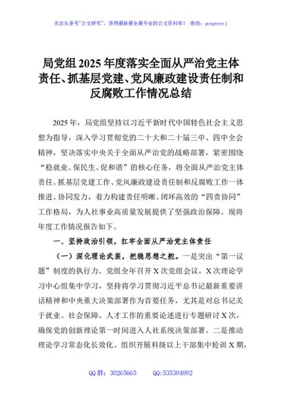 局党组2025年度落实全面从严治党主体责任、抓基层党建、党风廉政建设责任制和反腐败工作情况总结