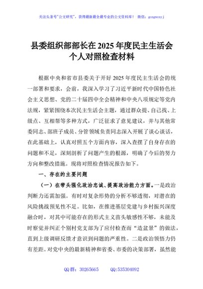 / 县委组织部部长在2025年度民主生活会个人对照检查材料