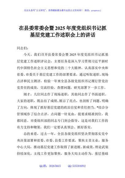 / 在县委常委会暨2025年度党组织书记抓基层党建工作述职会上的讲话