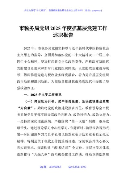 / 市税务局党组2025年度抓基层党建工作述职报告