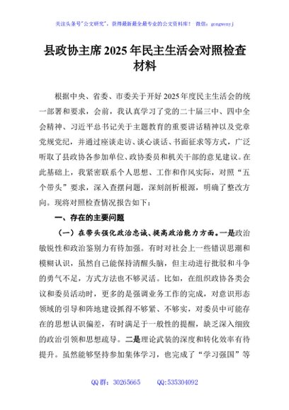 / 县政协主席2025年民主生活会对照检查材料