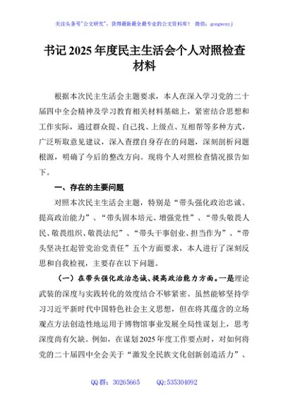 区直部门副科级领导2025年民主生活会个人发言提纲