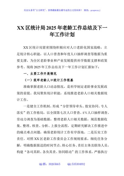 / XX区统计局2025年老龄工作总结及下一年工作计划