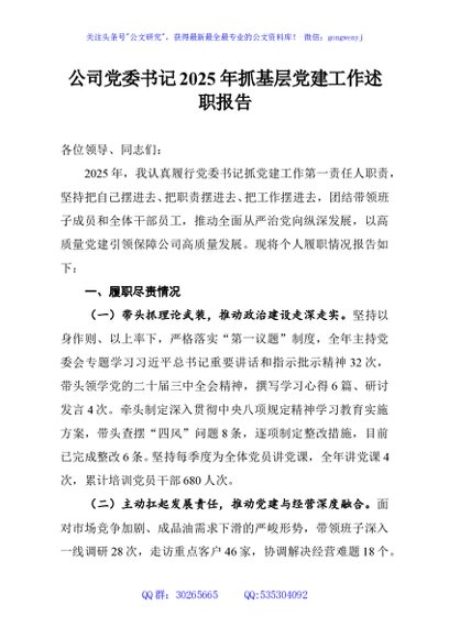 / 公司党委书记2025年抓基层党建工作述职报告