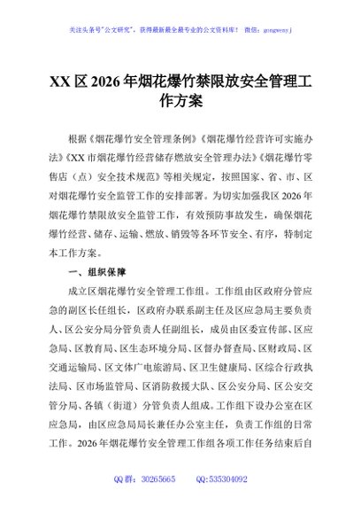 / XX区2026年烟花爆竹禁限放安全管理工作方案