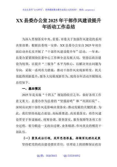 / XX县委办公室2025年干部作风建设提升年活动工作总结