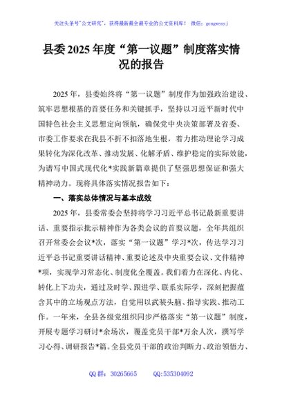 / 县委2025年度“第一议题”制度落实情况的报告