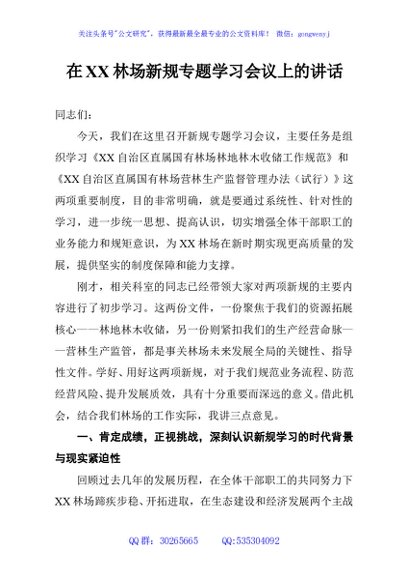/ 在XX林场新规专题学习会议上的讲话