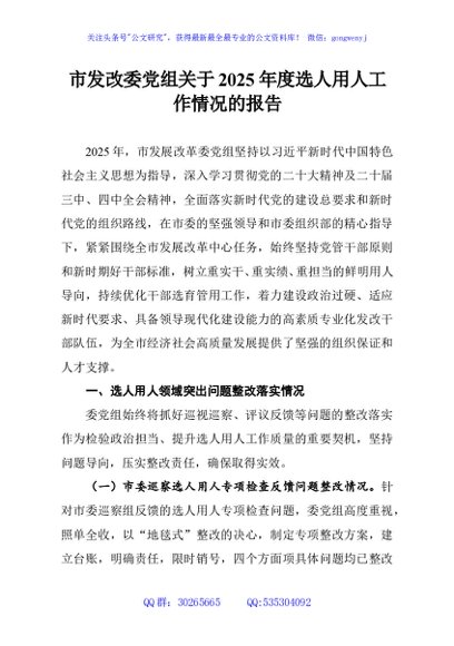 / 市发改委党组关于2025年度选人用人工作情况的报告