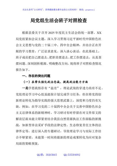 / 局党组生活会班子对照检查