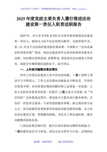/ 2025年度党政主要负责人履行推进法治建设第一责任人职责述职报告