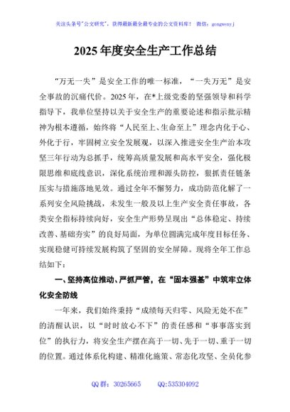 / 2025年度安全生产工作总结