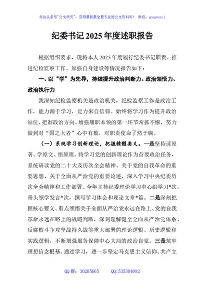 / 纪委书记2025年度述职报告