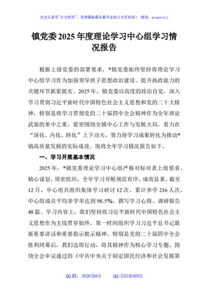 / 镇党委2025年度理论学习中心组学习情况报告