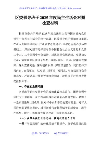 / 区委领导班子2025年度民主生活会对照检查材料