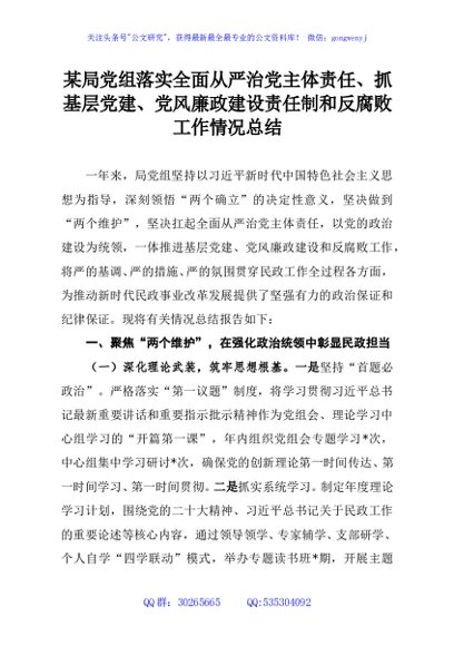 / 某局党组落实全面从严治党主体责任、抓基层党建、党风廉政建设责任制和反腐败工作情况总结