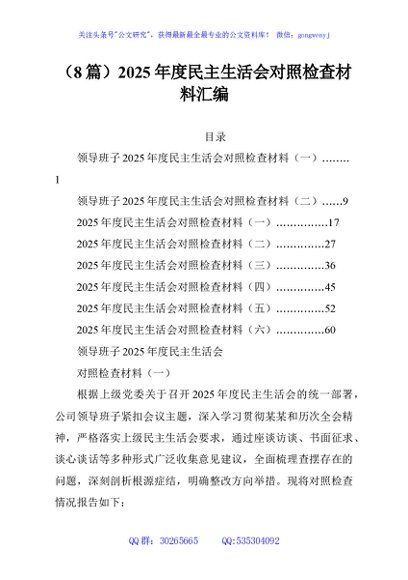 / (8篇)2025年度民主生活会对照检查材料汇编