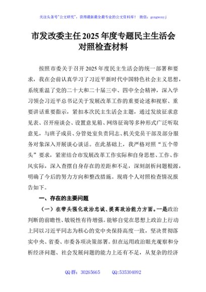 / 市发改委主任2025年度专题民主生活会对照检查材料