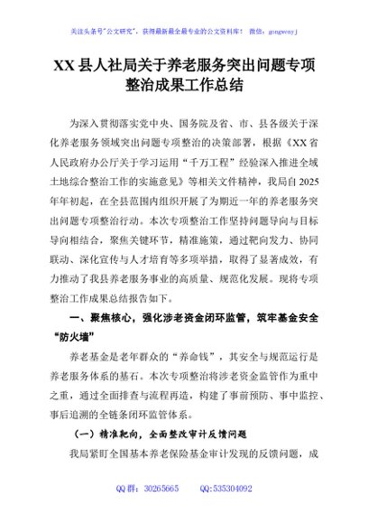 / XX县人社局关于养老服务突出问题专项整治成果工作总结