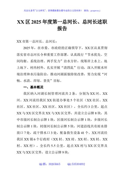 / XX区2025年度第一总河长、总河长述职报告