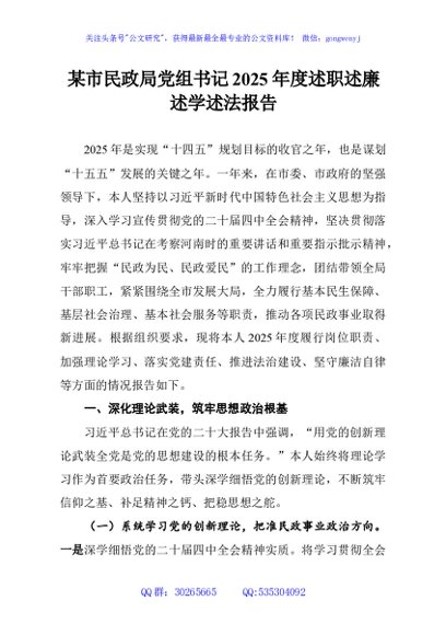 / 某市民政局党组书记2025年度述职述廉述学述法报告