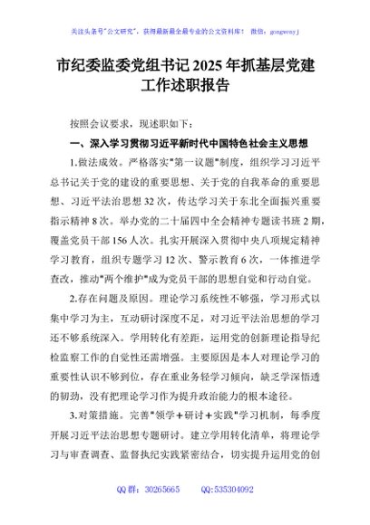 / 市纪委监委党组书记2025年抓基层党建工作述职报告