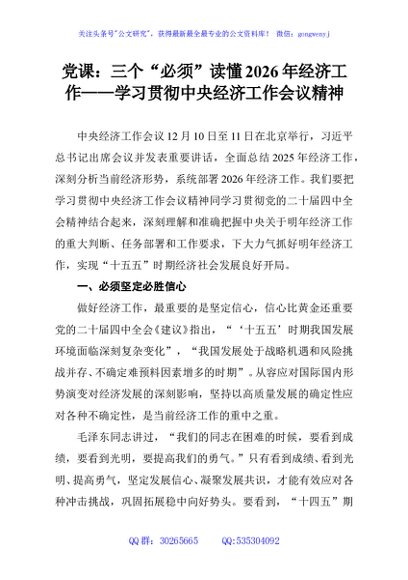 / 党课:三个“必须”读懂2026年经济工作——学习贯彻中央经济工作会议精神