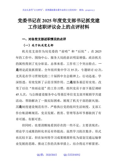 / 党委书记在2025年度党支部书记抓党建工作述职评议会上的点评材料