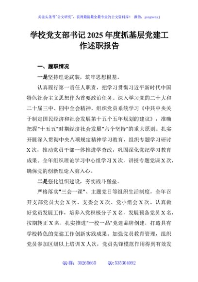 / 学校党支部书记2025年度抓基层党建工作述职报告