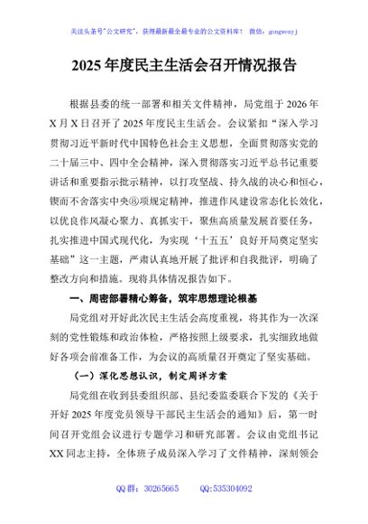 / 2025年度民主生活会召开情况报告