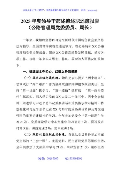 / 2025年度领导干部述德述职述廉报告(公路管理局党委委员局长)