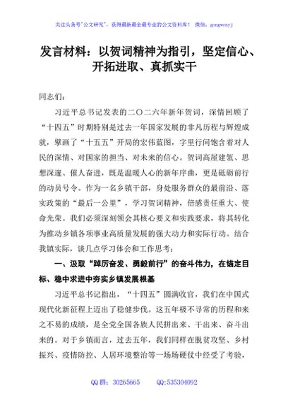 / 发言材料:以贺词精神为指引,坚定信心、开拓进取、真抓实干