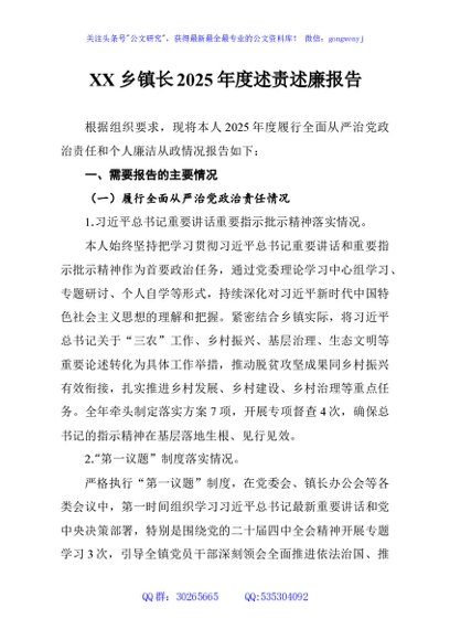 / XX乡镇长2025年度述责述廉报告